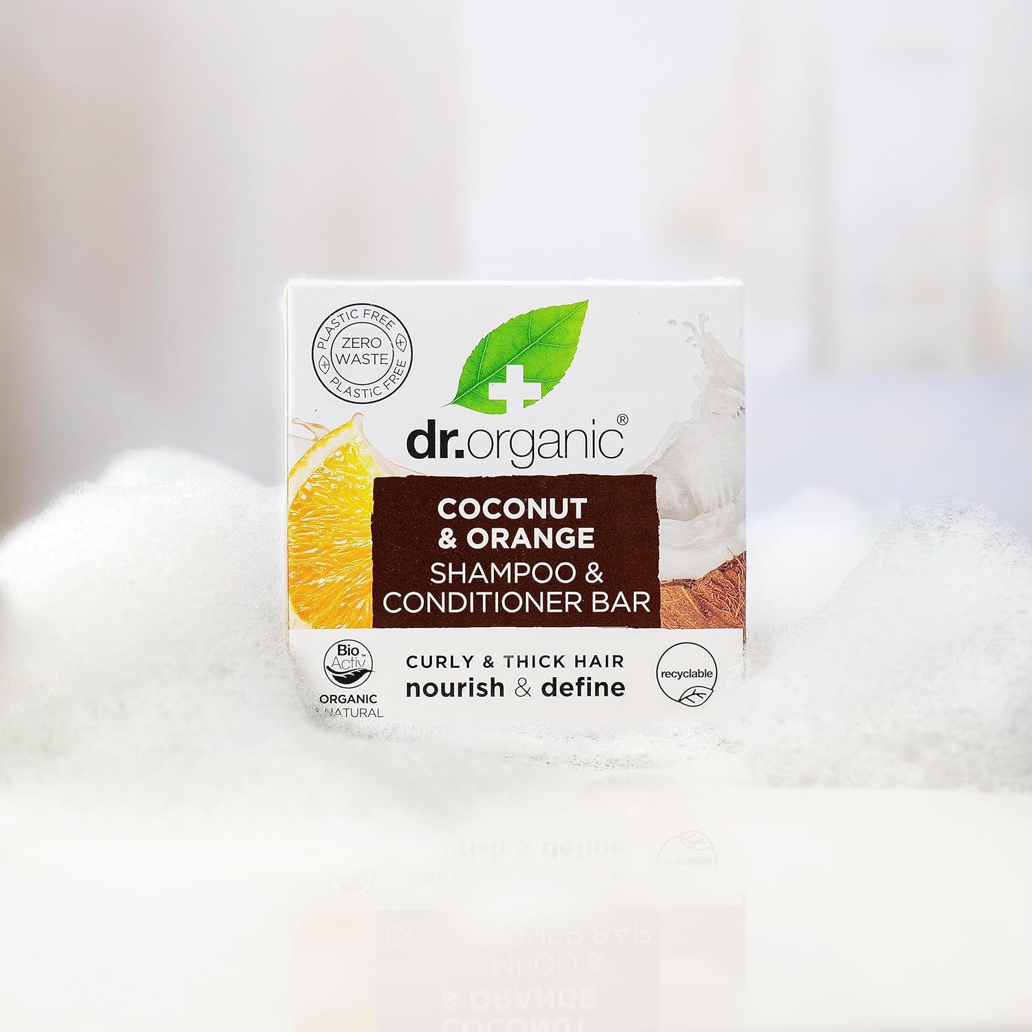 Dr Organic Coconut & Orange Shampoo & Conditioner Bar – Nourishing, Plastic-Free & Organic Hair Care (75 g)