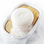 Keep your bar in a wooden soap dish or on a natural loofah pad so it can dry completely between washes — it’ll last longer and stay fresh for your next tropical hair day 🌴.