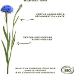 - Organic Cornflower Water (Vercors): Calming, soothing, anti-inflammatory. Locally sourced in France to reduce transport impact.