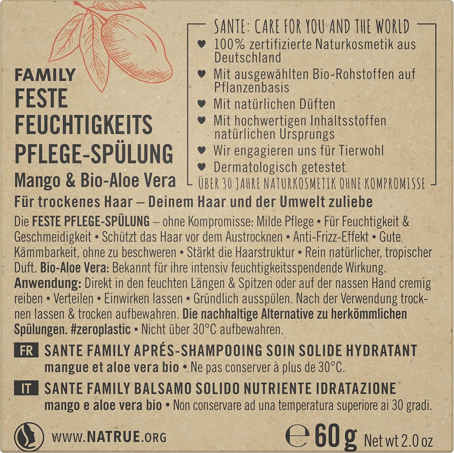 Plastic-Free | Vegan | Certified Natural Cosmetics | Mango & Organic Aloe Vera | Silicone-Free | Anti-Frizz