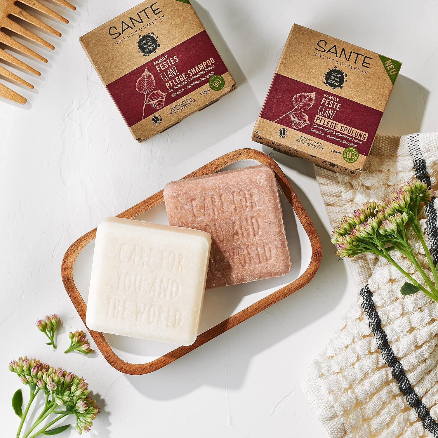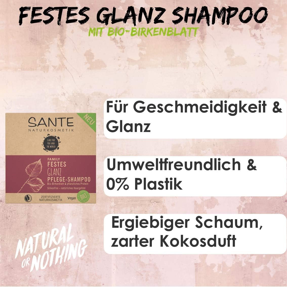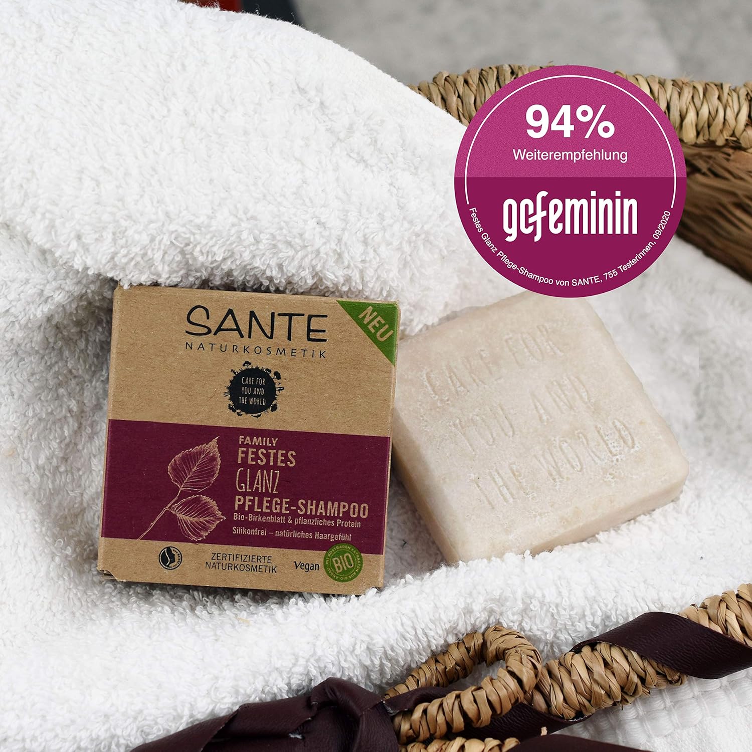 SANTE Naturkosmetik Vaste shampoo voor glanzend en normaal haar, veganistische formule met bio-berkenblad en plantaardige eiwitten, vaste glans, verzorgingsshampoo, 1 x 60 g
