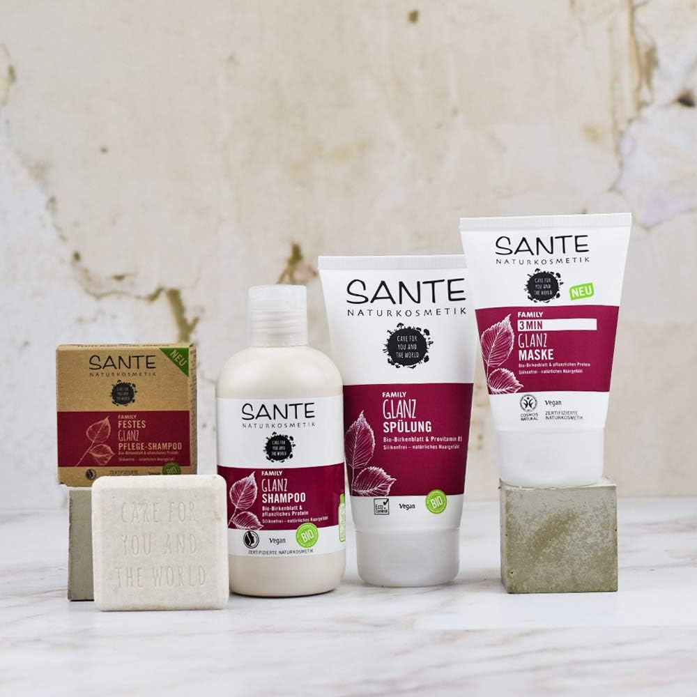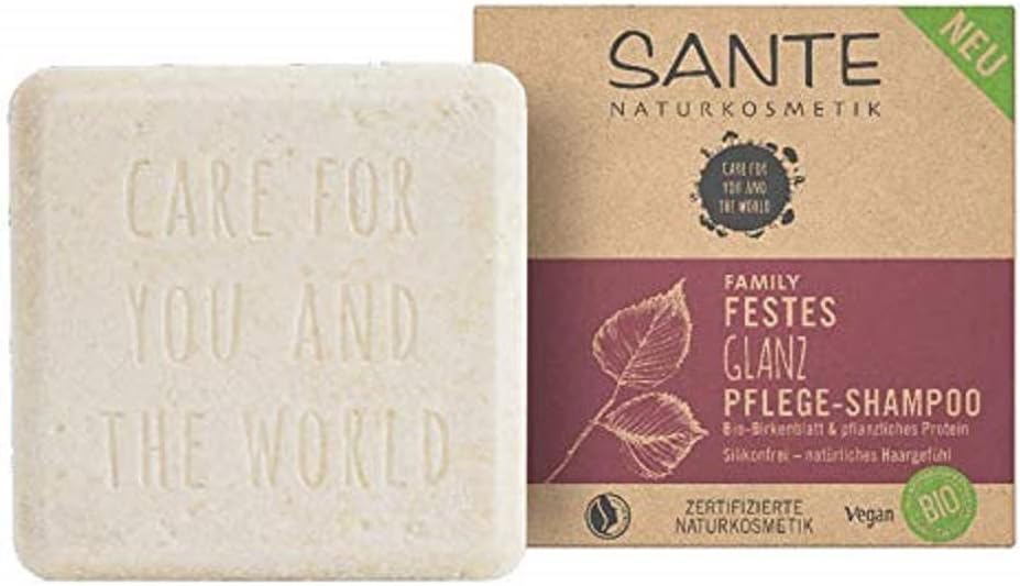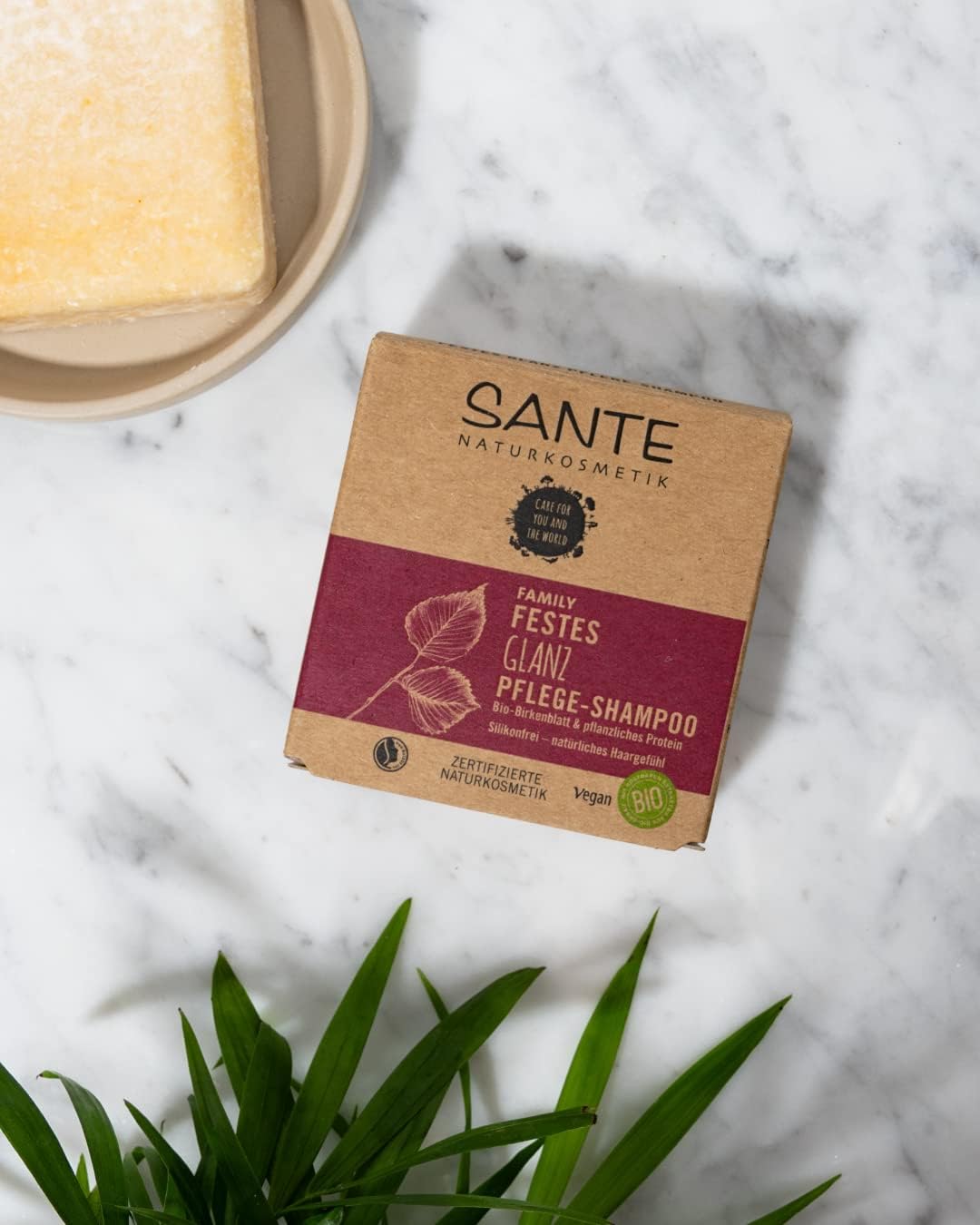 SANTE Naturkosmetik Vaste shampoo voor glanzend en normaal haar, veganistische formule met bio-berkenblad en plantaardige eiwitten, vaste glans, verzorgingsshampoo, 1 x 60 g