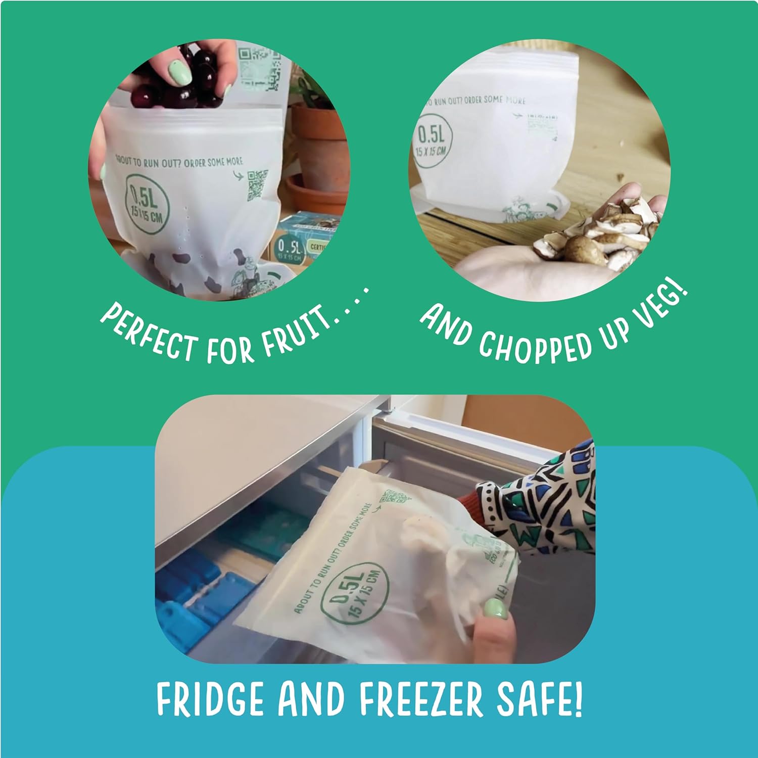 - Gemak: de hersluitbare Eco Green Living-zakken zijn perfect voor het ordenen van knopen, gehakte groenten en fruit, of het opruimen van willekeurige kabels. Geniet van de bruikbaarheid van hersluitbare zakken met het extra voordeel dat ze composteerbaar zijn!