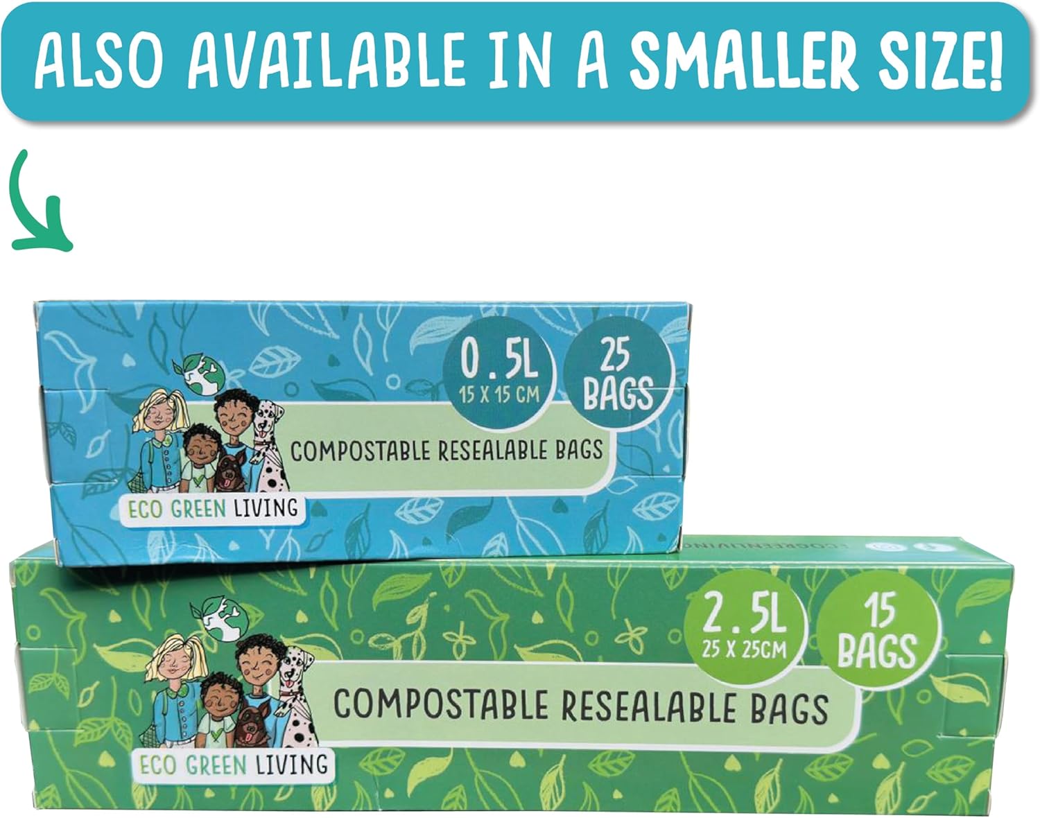 Eco Green Living Composteerbare Grote Hersluitbare Zakken met Ritssluiting Voor Voedsel en Opslag, 15 Zakken, 2,5 Liter, 25 cm x 25 cm 2 Stuks