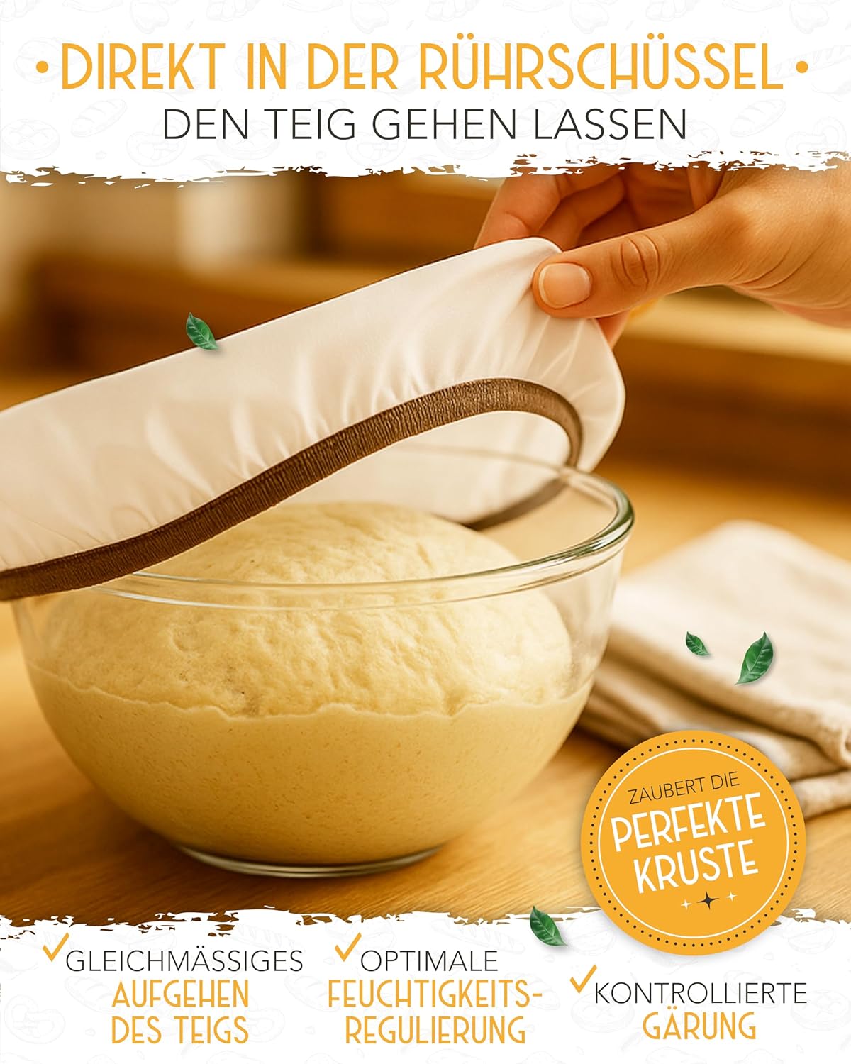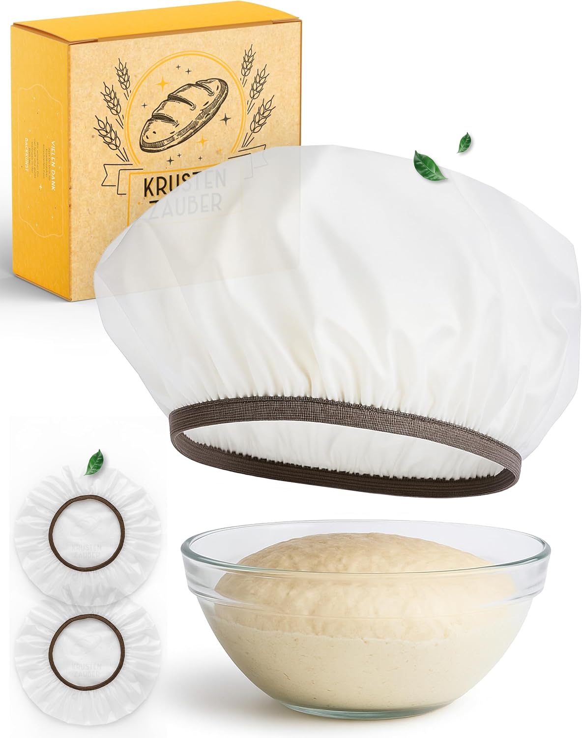 KRUSTENZAUBER 2 x cover for proofing baskets, reusable yeast foil as bread baking accessories, fermentation caps create ideal conditions for dough fermentation, perfect for leaven and other