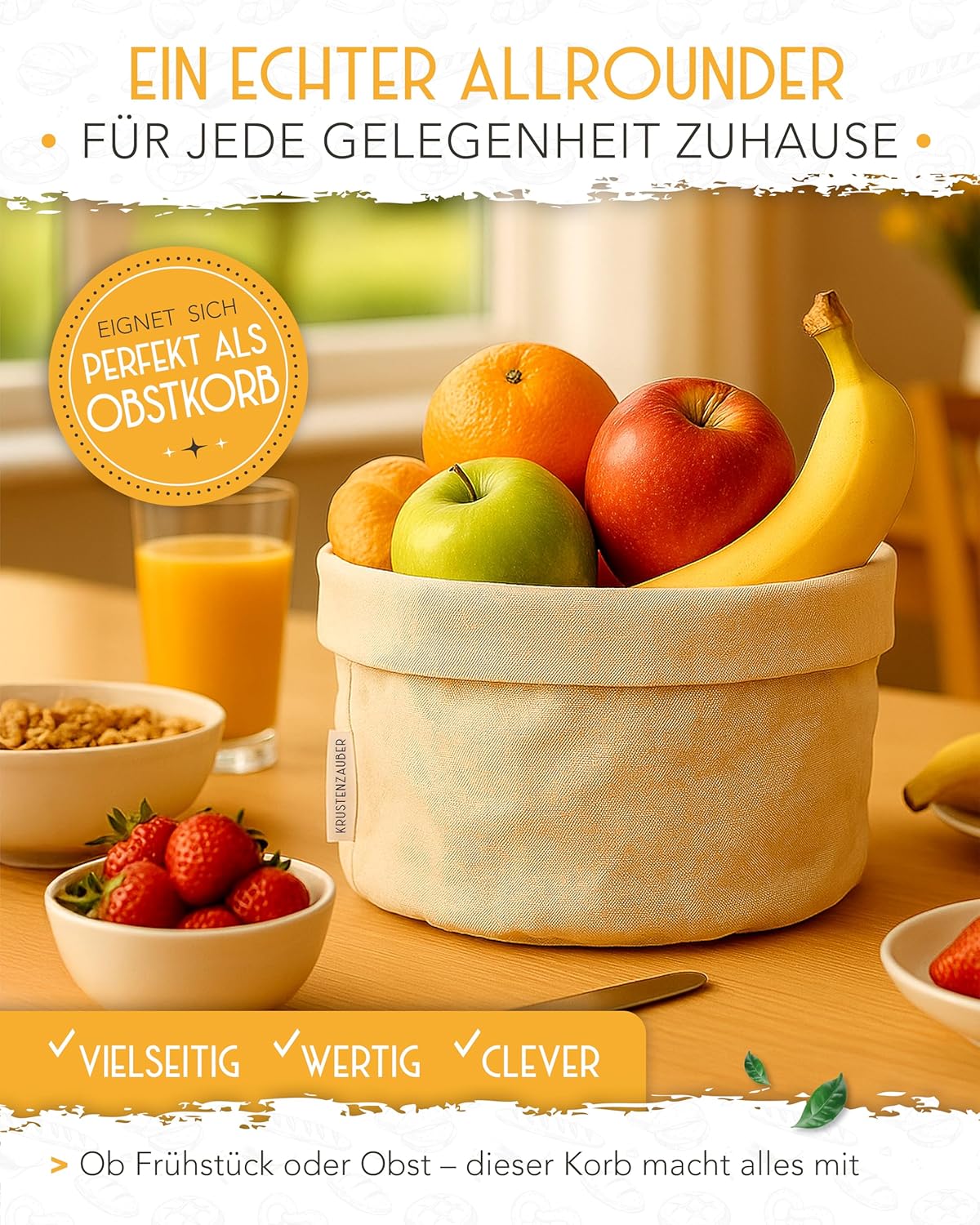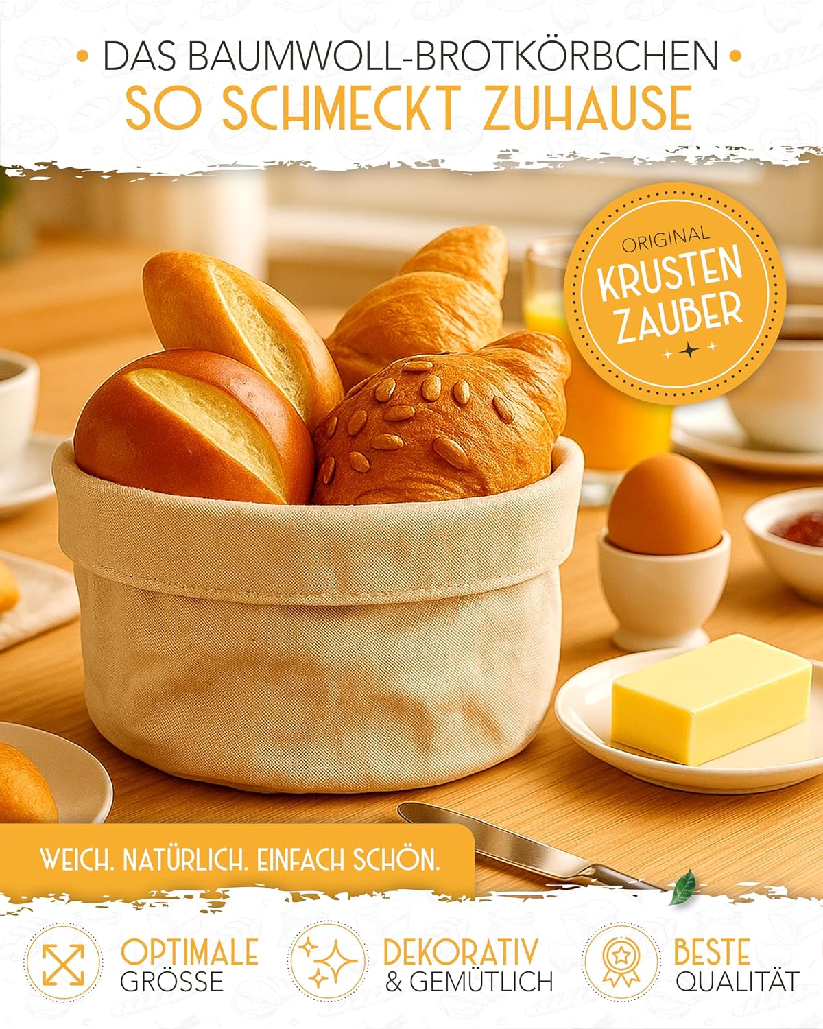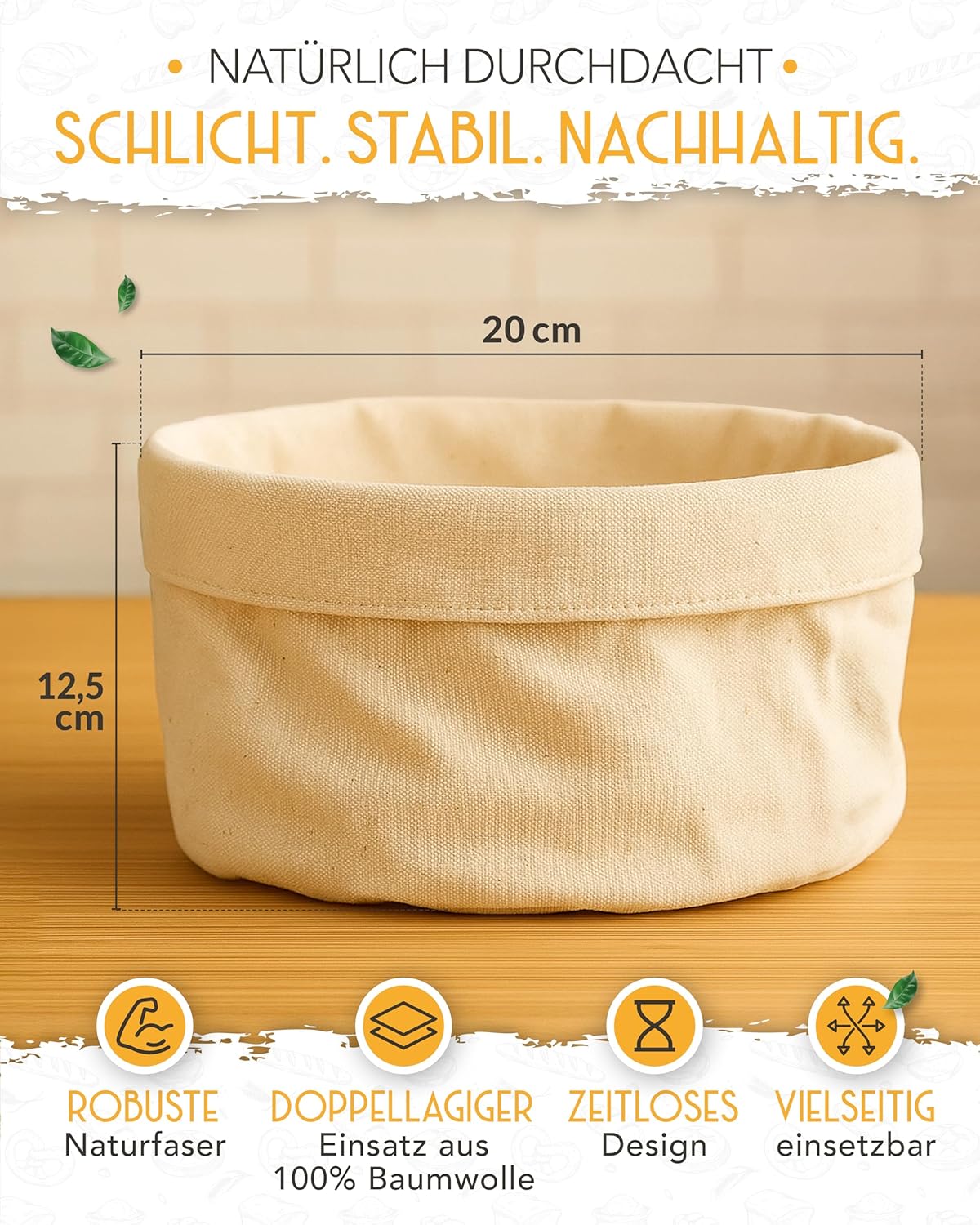 KRUSTENZAUBER Modern bread basket made of 100% cotton, washable bread basket for bread and rolls, 20 cm diameter, bread basket for storing bread, breakfast, kitchen and dining table, practical and