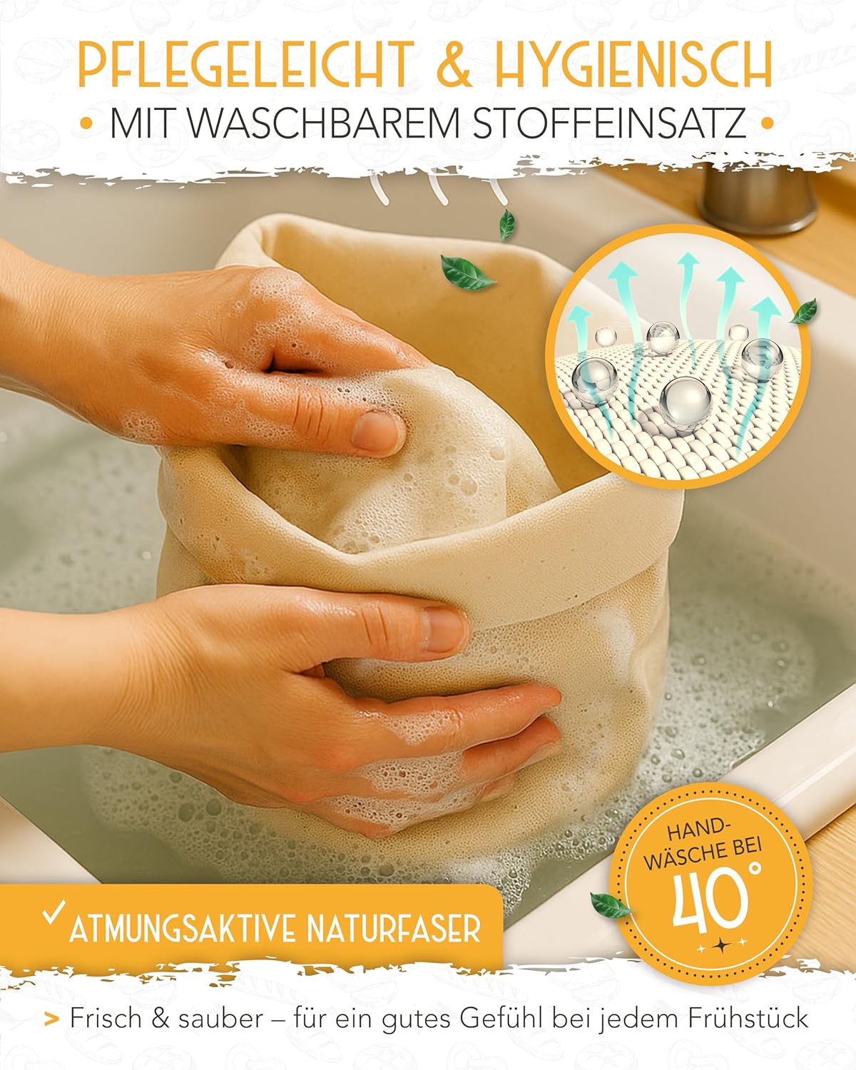 - Environmentally friendly: the bread basket fabric is made of cotton and thus reduces plastic waste. So you protect the environment while storing bread. The bread bags are also a popular gift