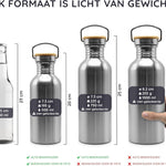 • Materials: 304 stainless steel (bottle), bamboo & stainless steel (lid), silicone (seal)
