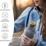 • Care: Bottle is dishwasher-safe; hand-wash lid and avoid soaking bamboo. Hand-wash recommended for color variants to protect the exterior finish.