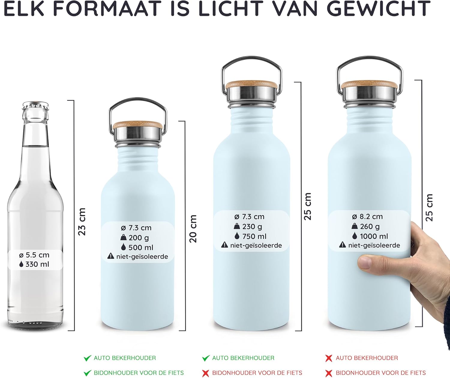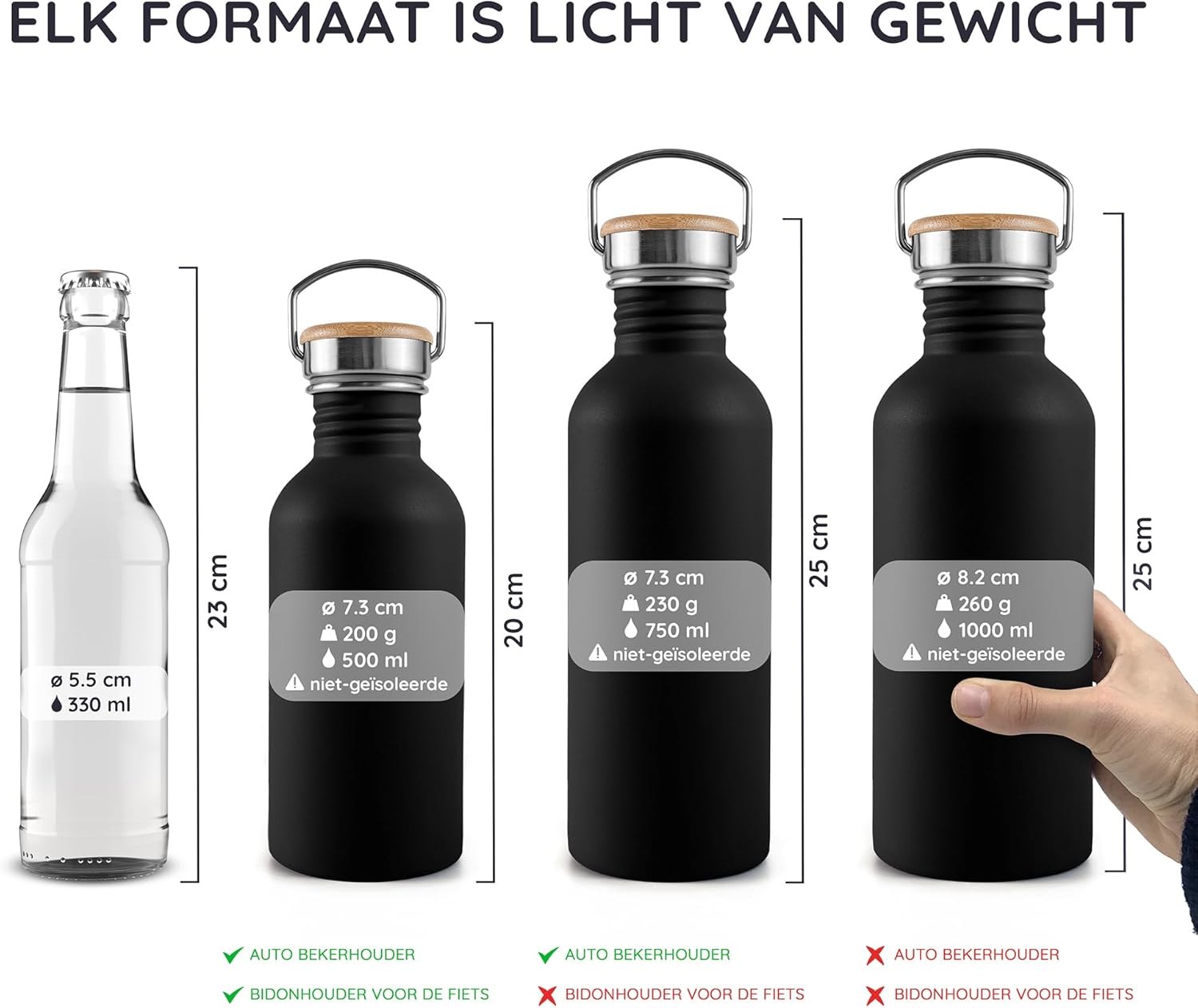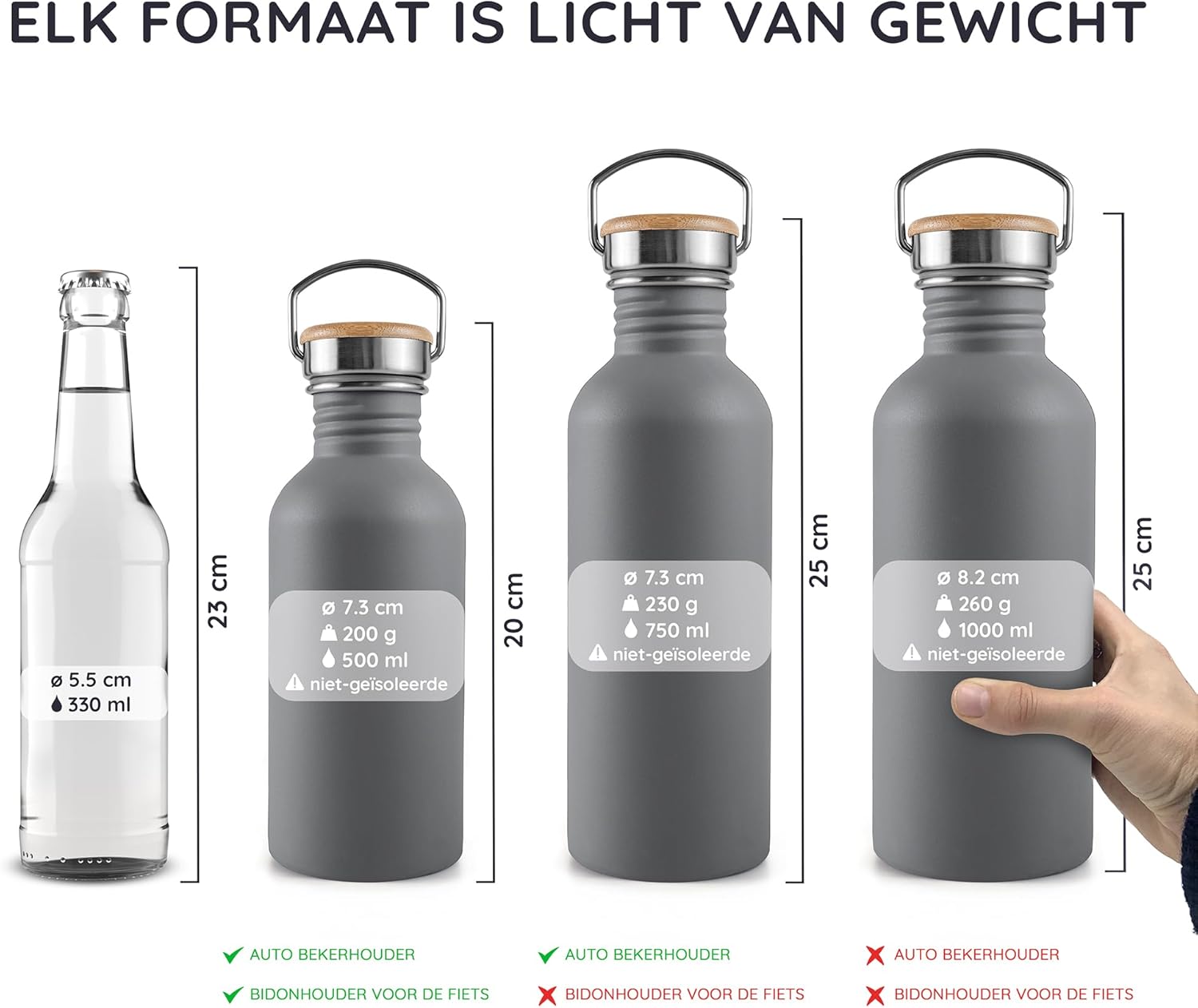 • Sizes: 0.5 L, 0.75 L, 0.9 L, 1 L